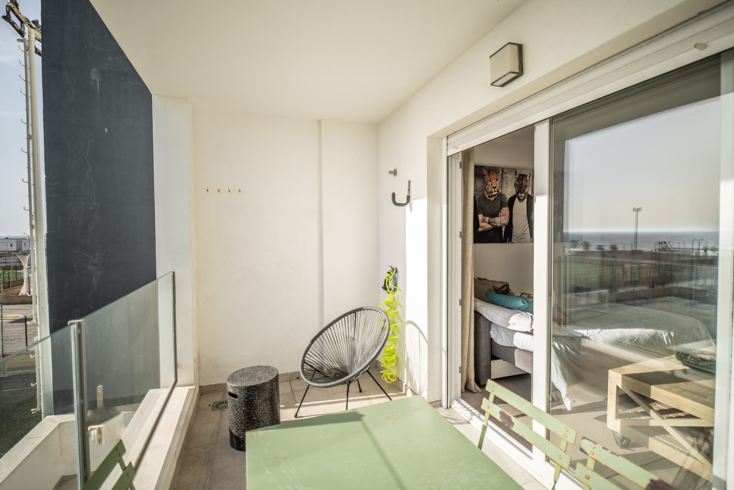 Terraza de 8 metros con vistas al mar, mesa y sillón. Vistas espectaculares a África y la playa de los Lances.